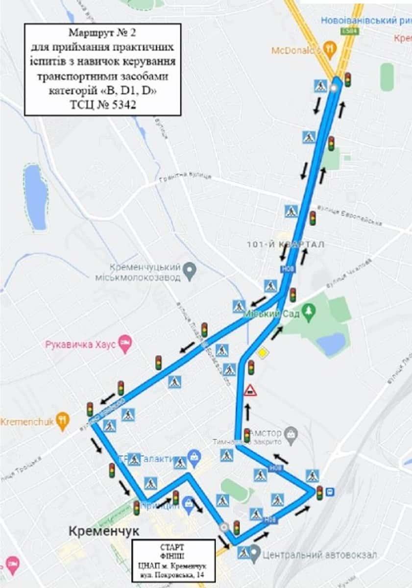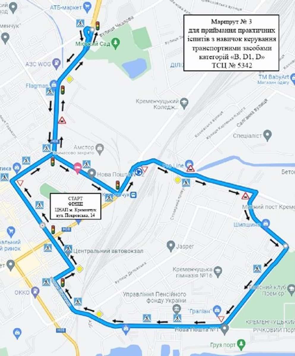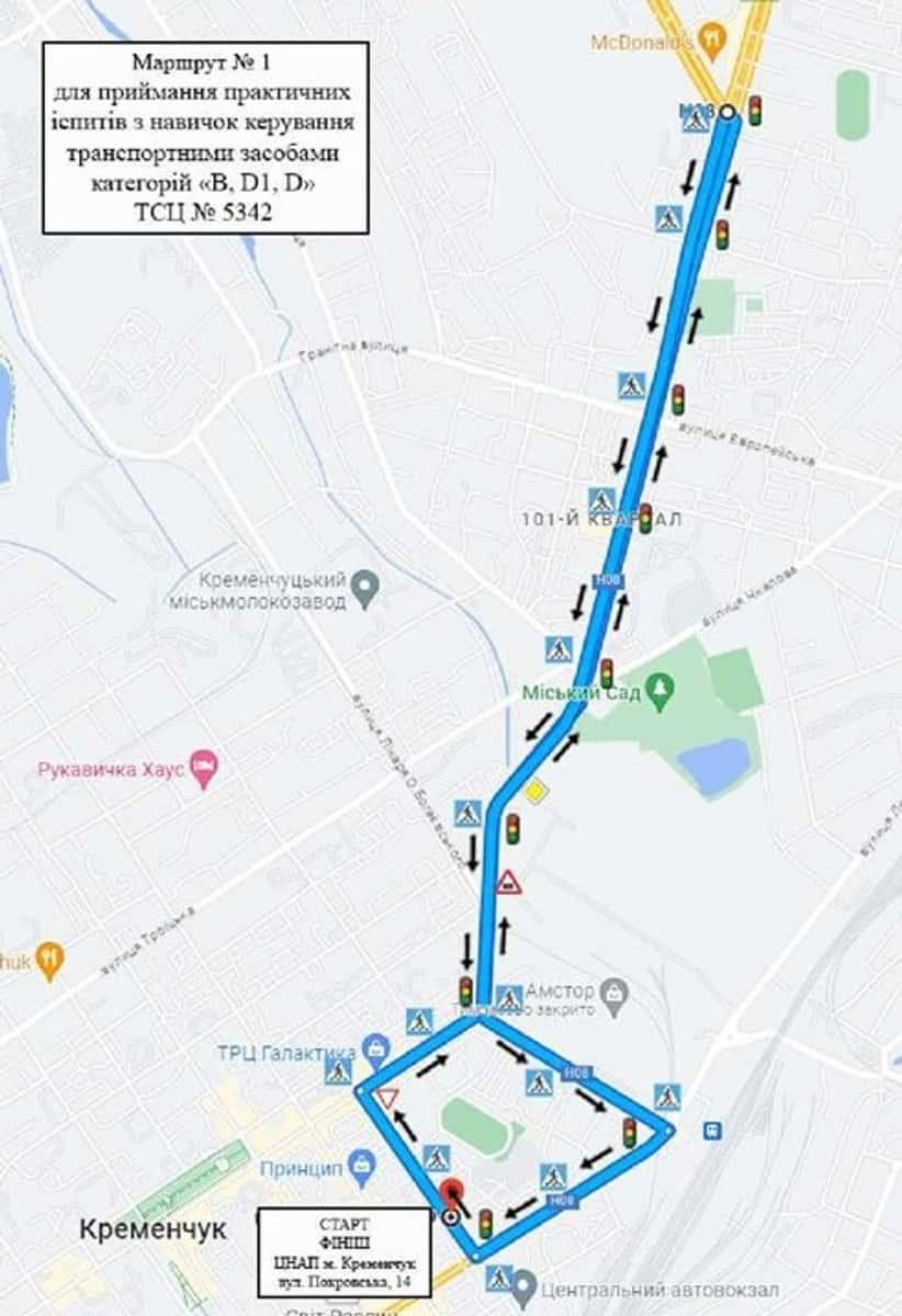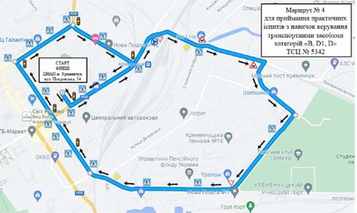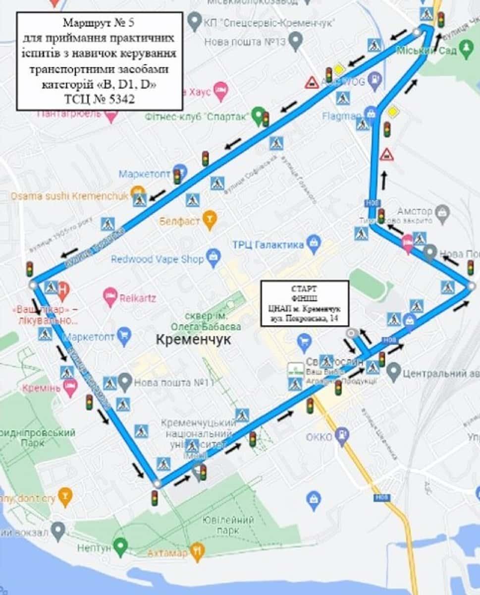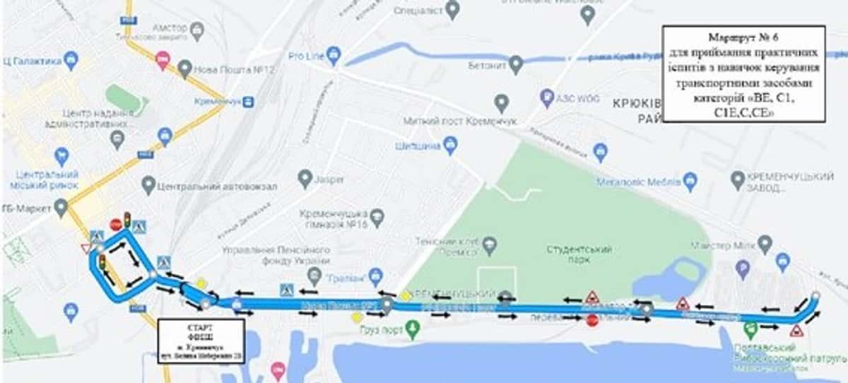 Кременчук - Маршрути для перевірки навичок керування ТЗ