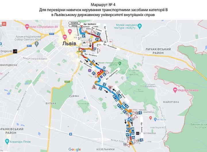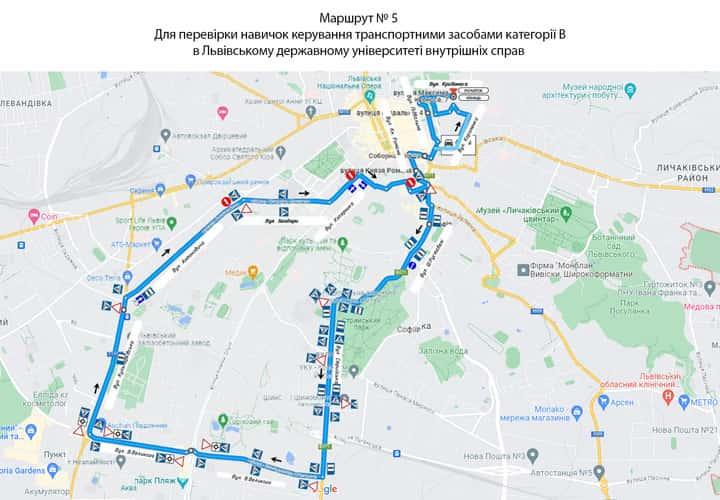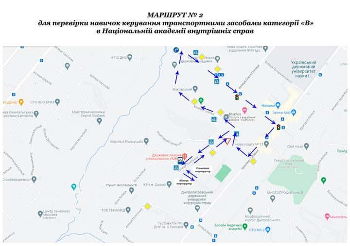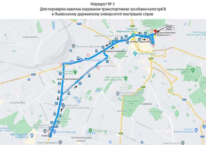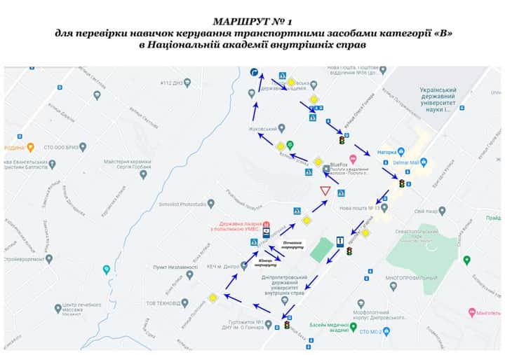 Маршрути для практичних іспитів у рамках проєкту «Автошколи для осіб з інвалідністю»