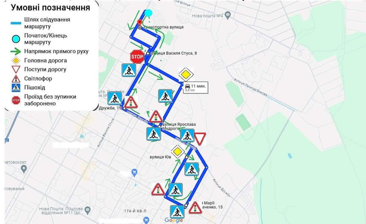 Маршрут №4 ТСЦ МВС № 1452. Для перевірки навичок керування ТЗ категорії B, D1, D, BE.