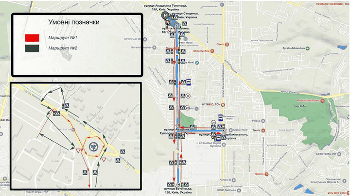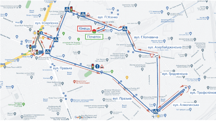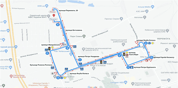 Маршрут №1 для перевірки навичок керування ТЗ категорії В, ВЕ в ТСЦ №8049 РСЦ МВС в м.Києві