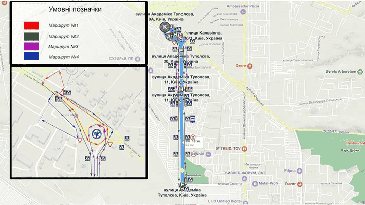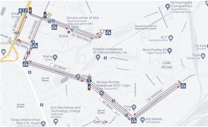 Маршрут №5 для перевірки навичок керування ТЗ категорії В, ВЕ в ТСЦ №8042 РСЦ МВС в м.Києві