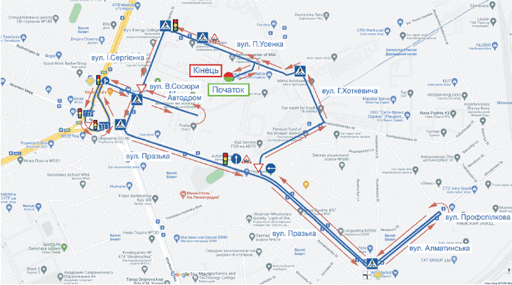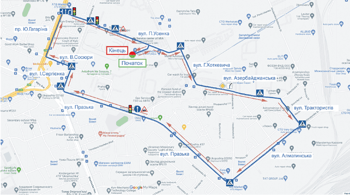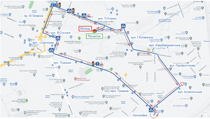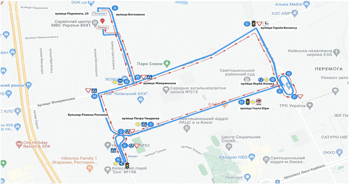 Маршрут №1 для перевірки навичок керування ТЗ категорії В, ВЕ, С1, С, СЕ, С1Е, D, D1, D1Е, DЕ в ТСЦ №8041 РСЦ МВС в м.Києві