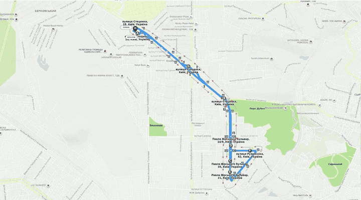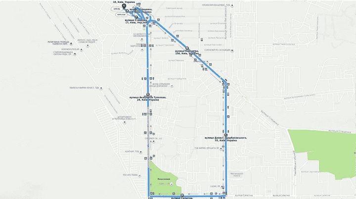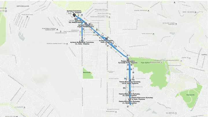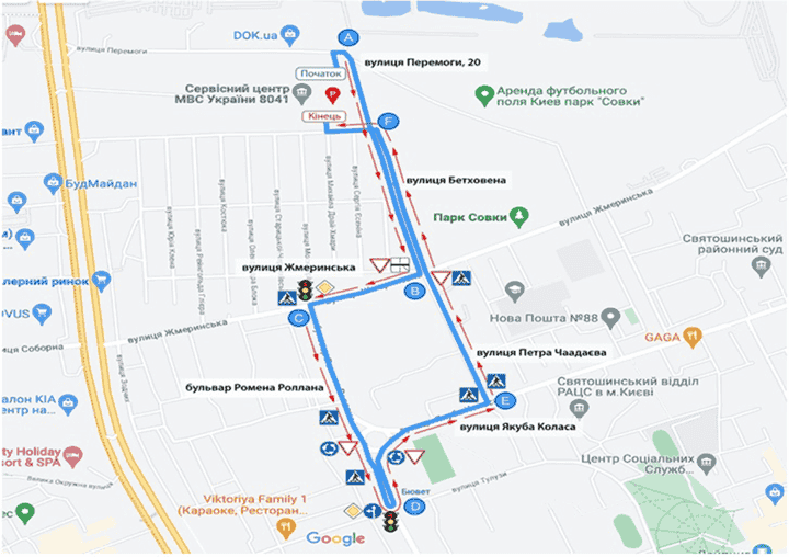 Маршрут №2 для перевірки навичок керування ТЗ категорії В, ВЕ, D, D1 в ТСЦ №8041 РСЦ МВС в м.Києві