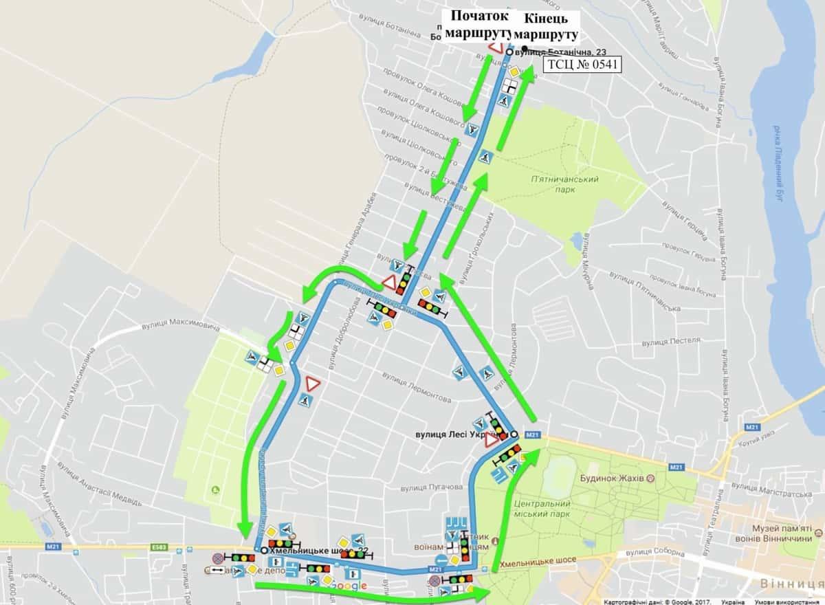Вінниця - Маршрути для перевірки навичок керування ТЗ
