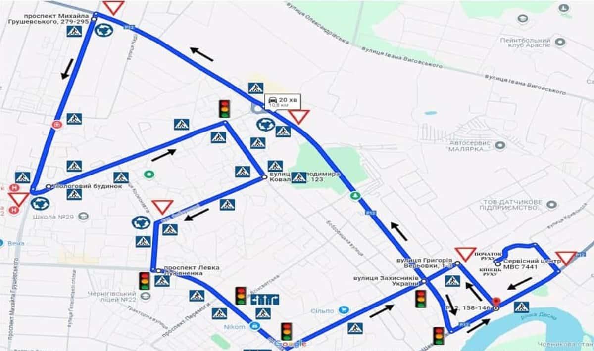 Маршрут №8 ТСЦ МВС № 7441. Для перевірки навичок керування ТЗ категорії B, BE, D1, D, D1E, DE.