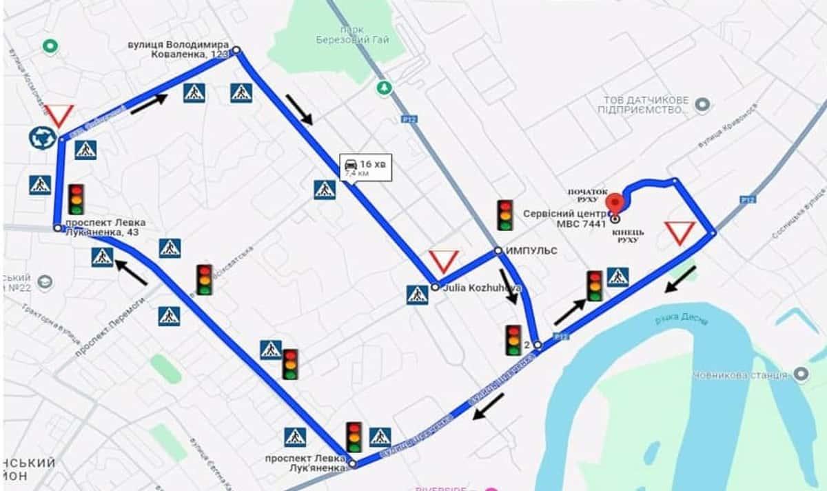 Чернігів - Маршрути для перевірки навичок керування ТЗ