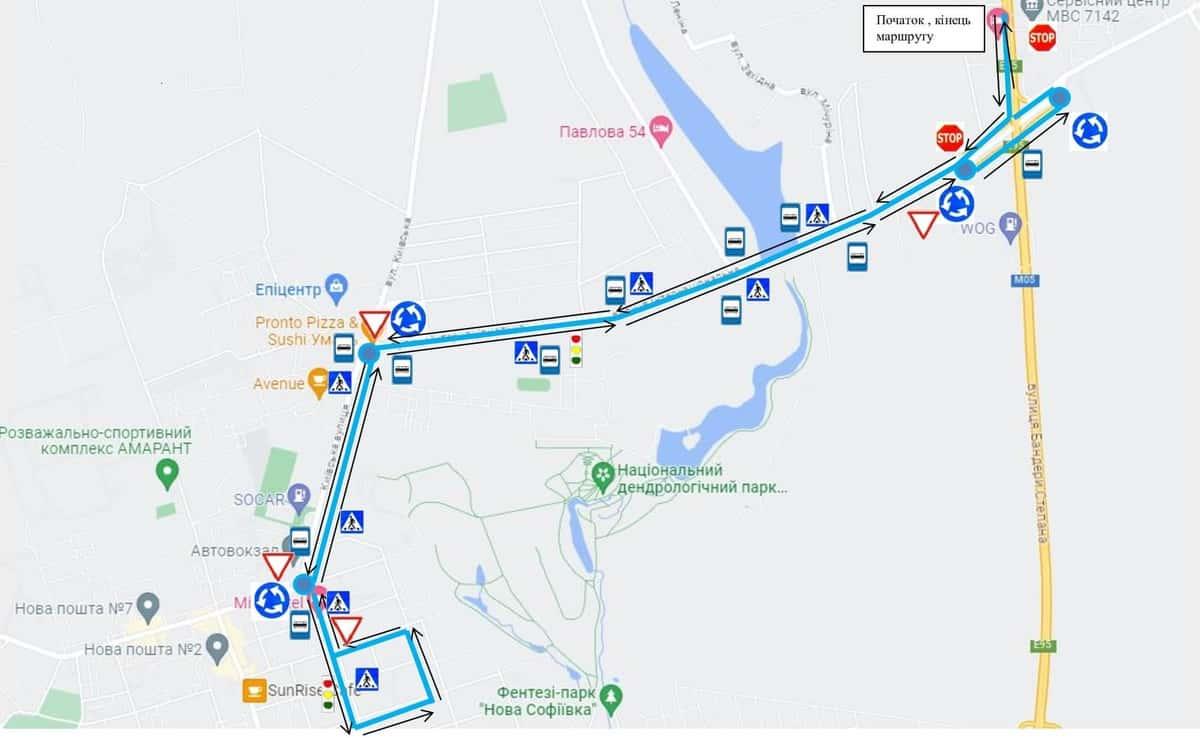 Маршрут №3 ТСЦ МВС № 7142. Для перевірки навичок керування ТЗ категорії C, C1, D1, D, C1E, CE, D1E, DE.