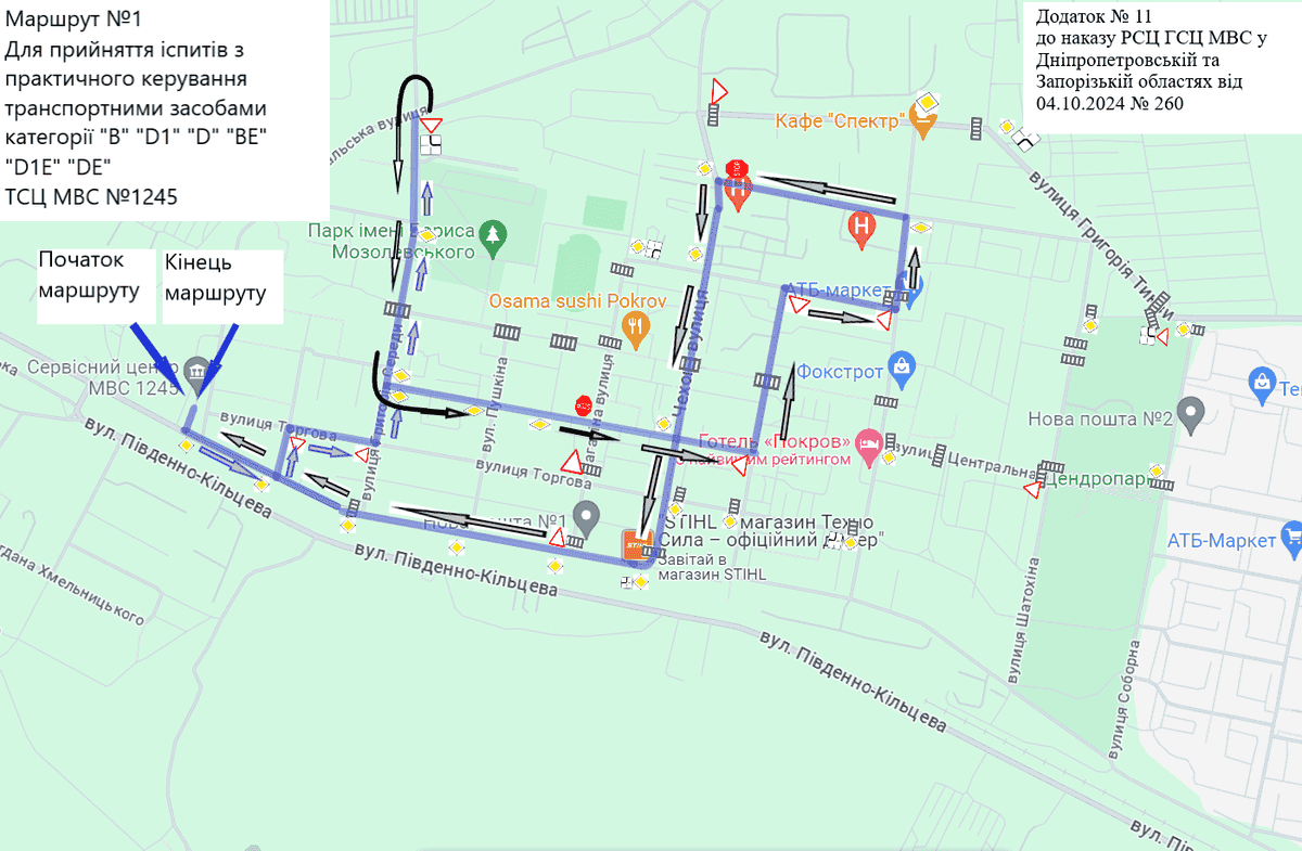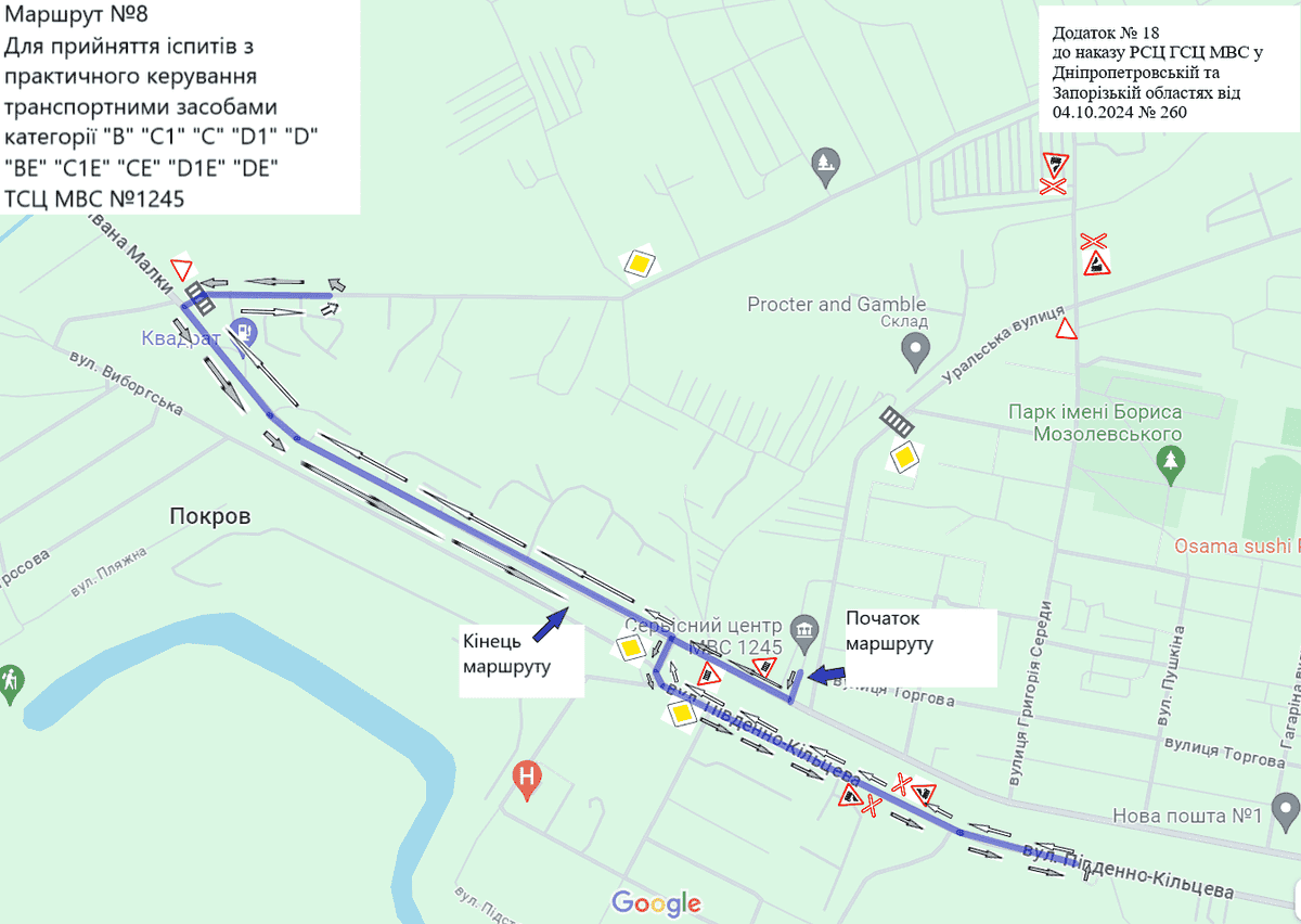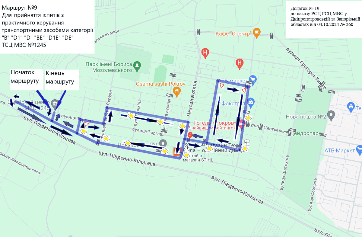 Покров - Маршрути для перевірки навичок керування ТЗ