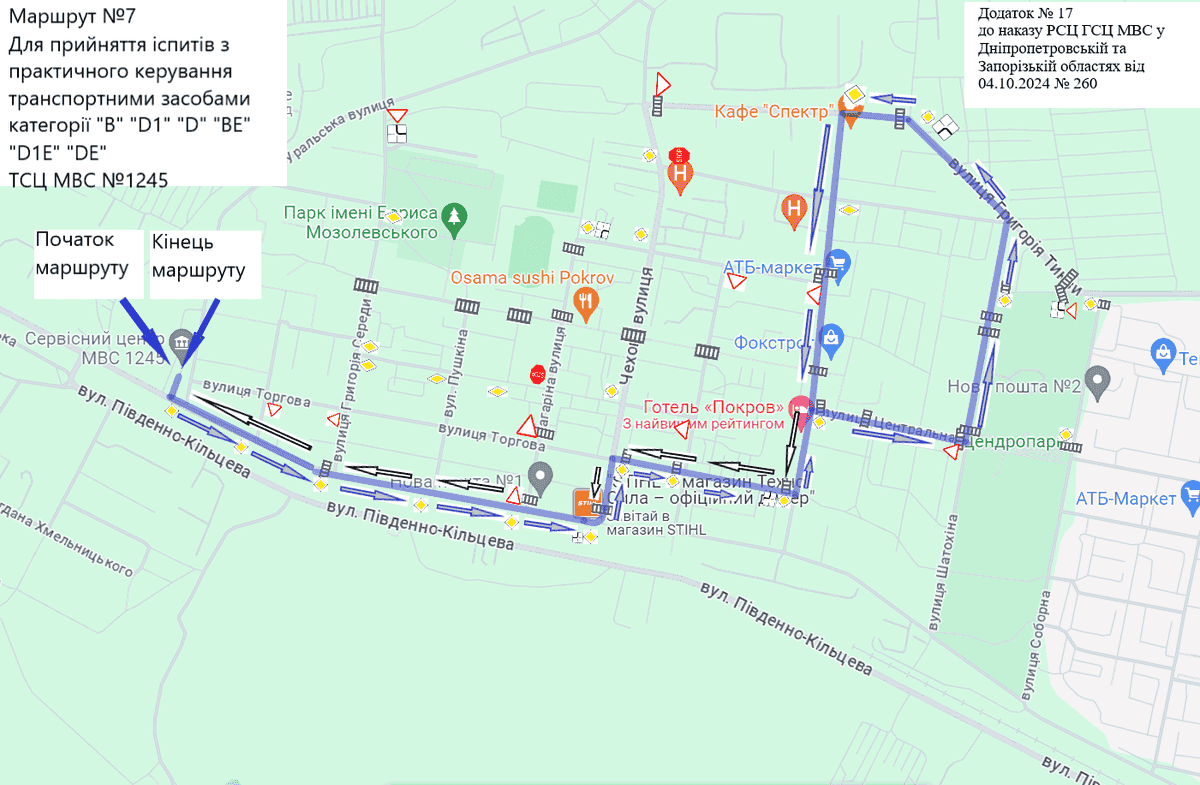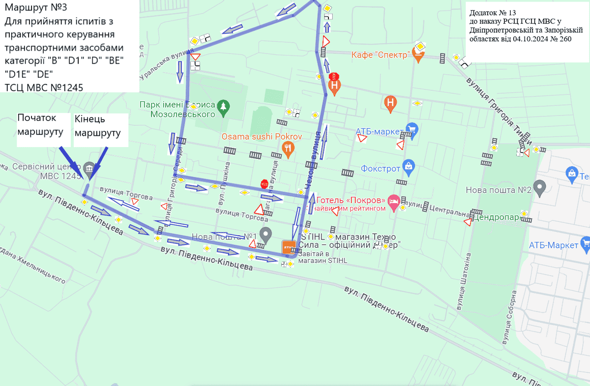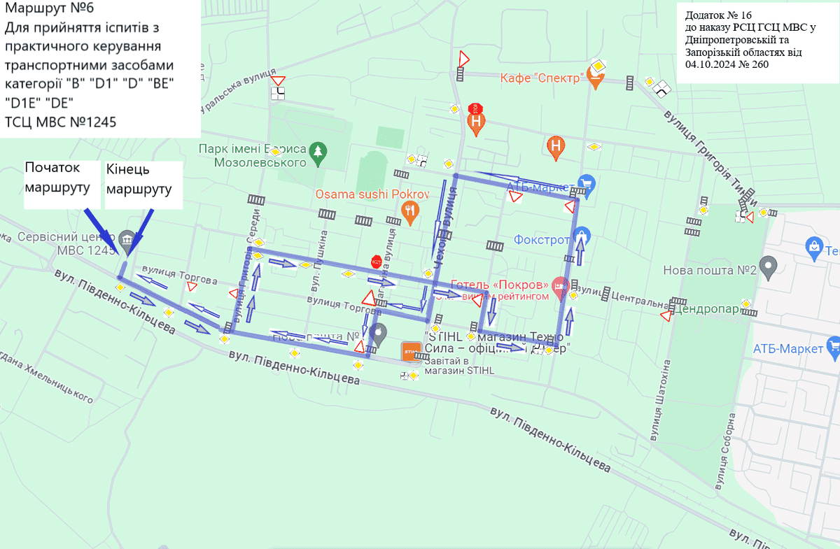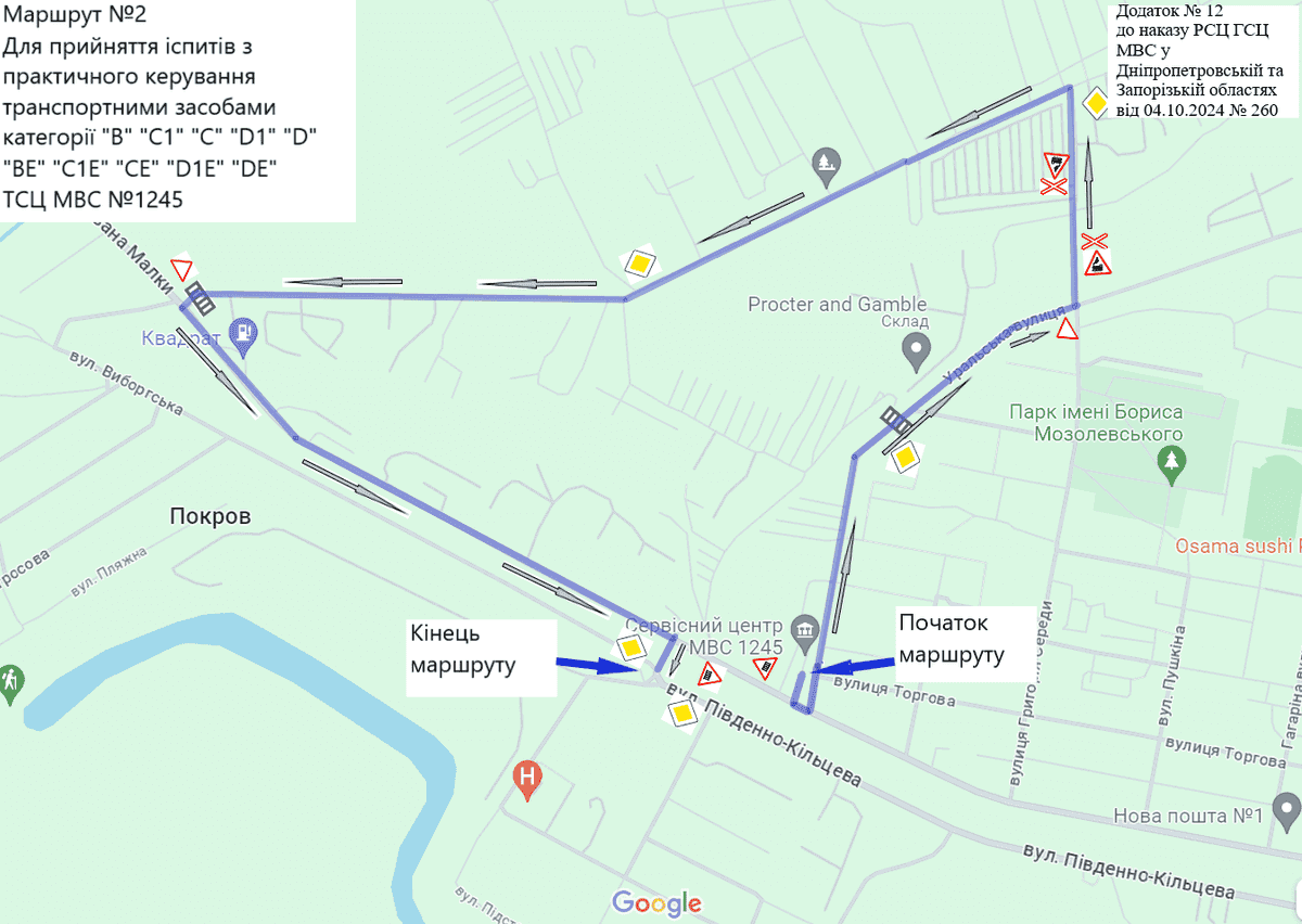 Покров - Маршрути для перевірки навичок керування ТЗ